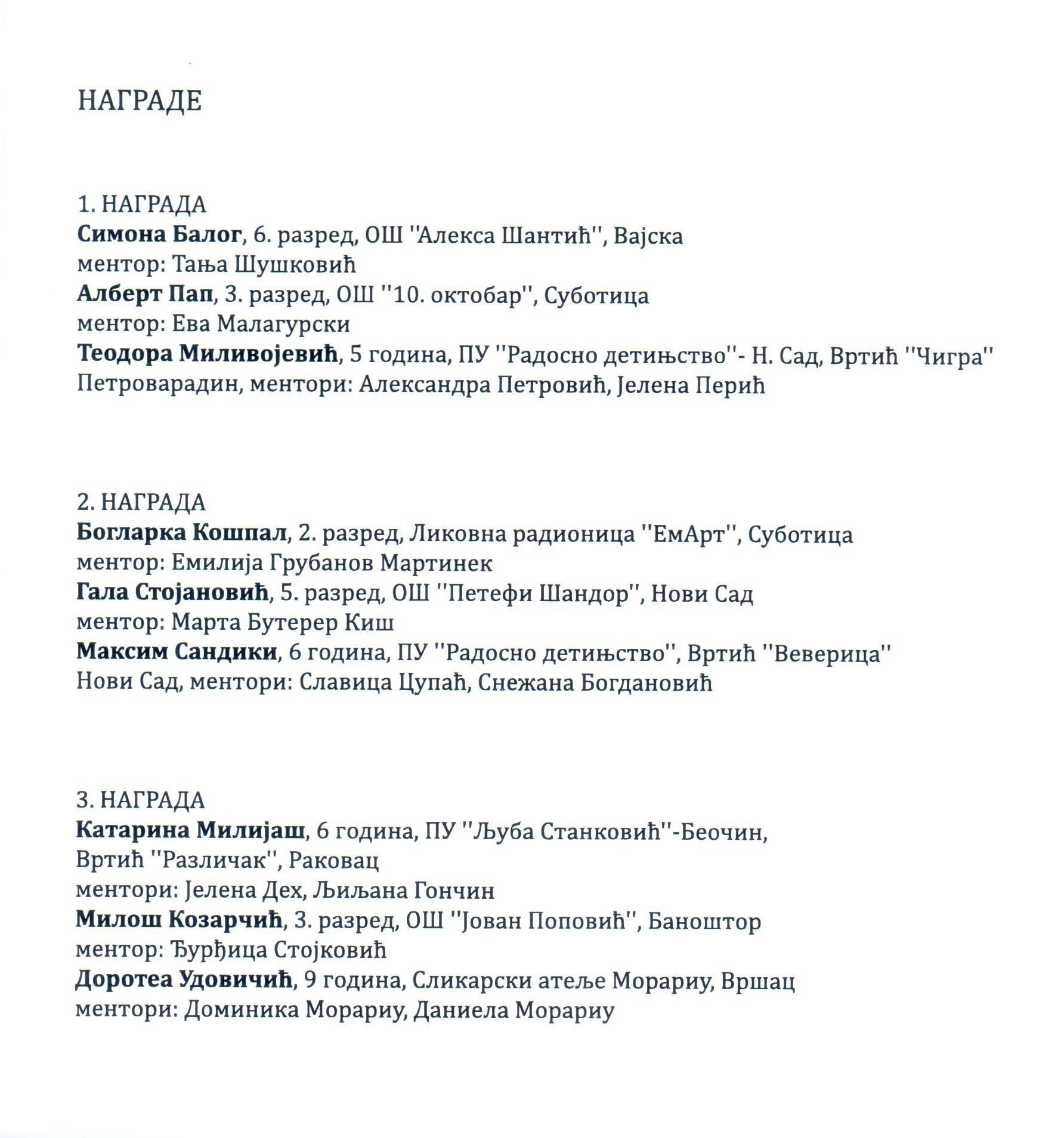 Nakon izlaganja su prisutnoj deci dodeljenje zaslužene nagrade (videti u prilogu spisak nagrada).
