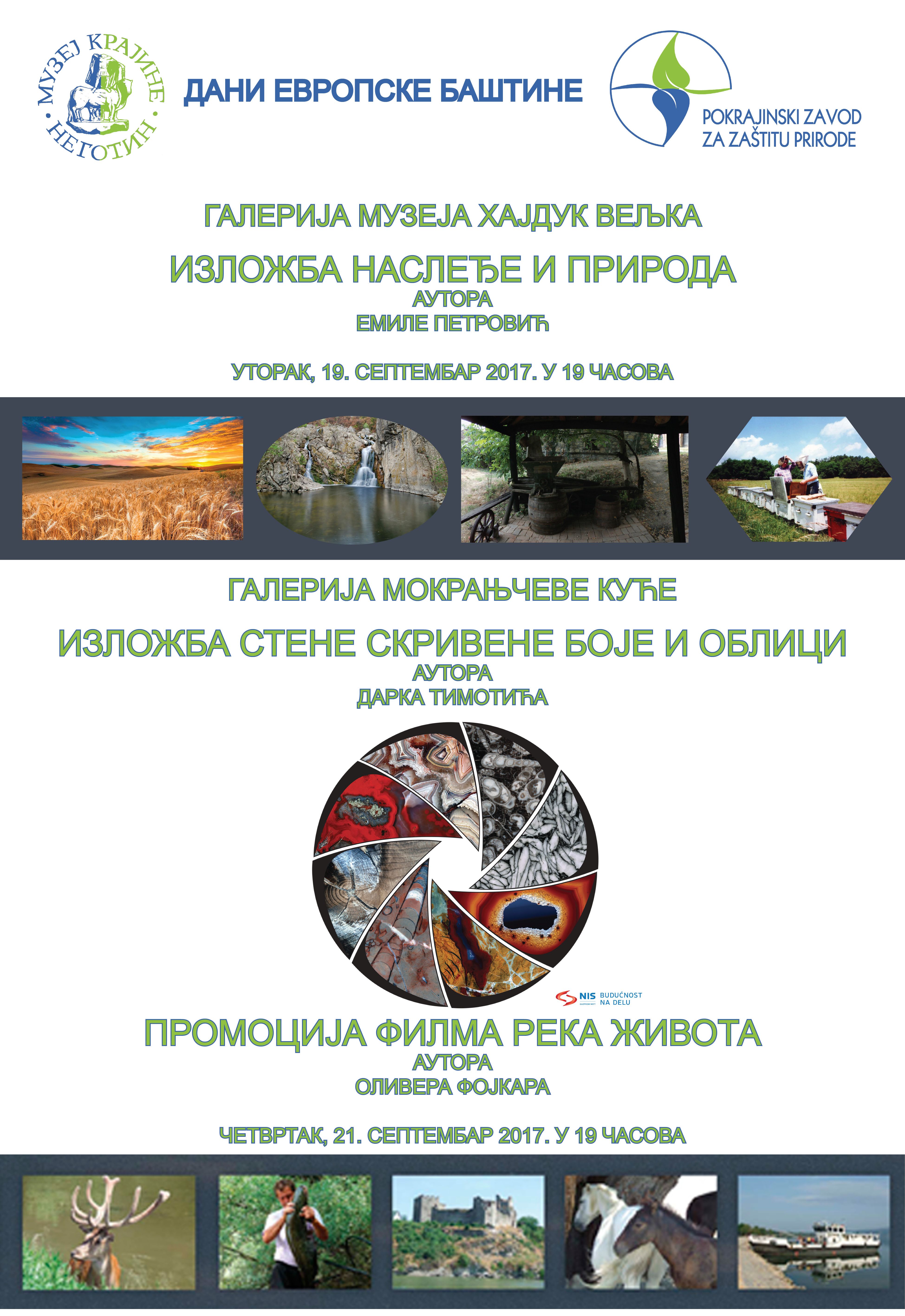 Pokrajinski zavod za zaštitu prirode zajedno sa Muzejom Krajine iz Negotina učestvuje u manifestacije Dani evropske baštine. Ove godine Dani evropske baštine u Srbiji biće obeleženi temom „Kulturno nasleđe i priroda" sa ciljem da se, tokom trajanja najvećeg evropskog festivala kulturnog nasleđa, ukaže u kojoj meri naše okruženje oblikuje naš način života, ali i naše živote u celini. Princip neodvojivosti kulturnog i prirodnog nasleđa prepoznao je i Unesko kroz Konvenciju o zaštiti svetke kulturne i prirodne baštine.