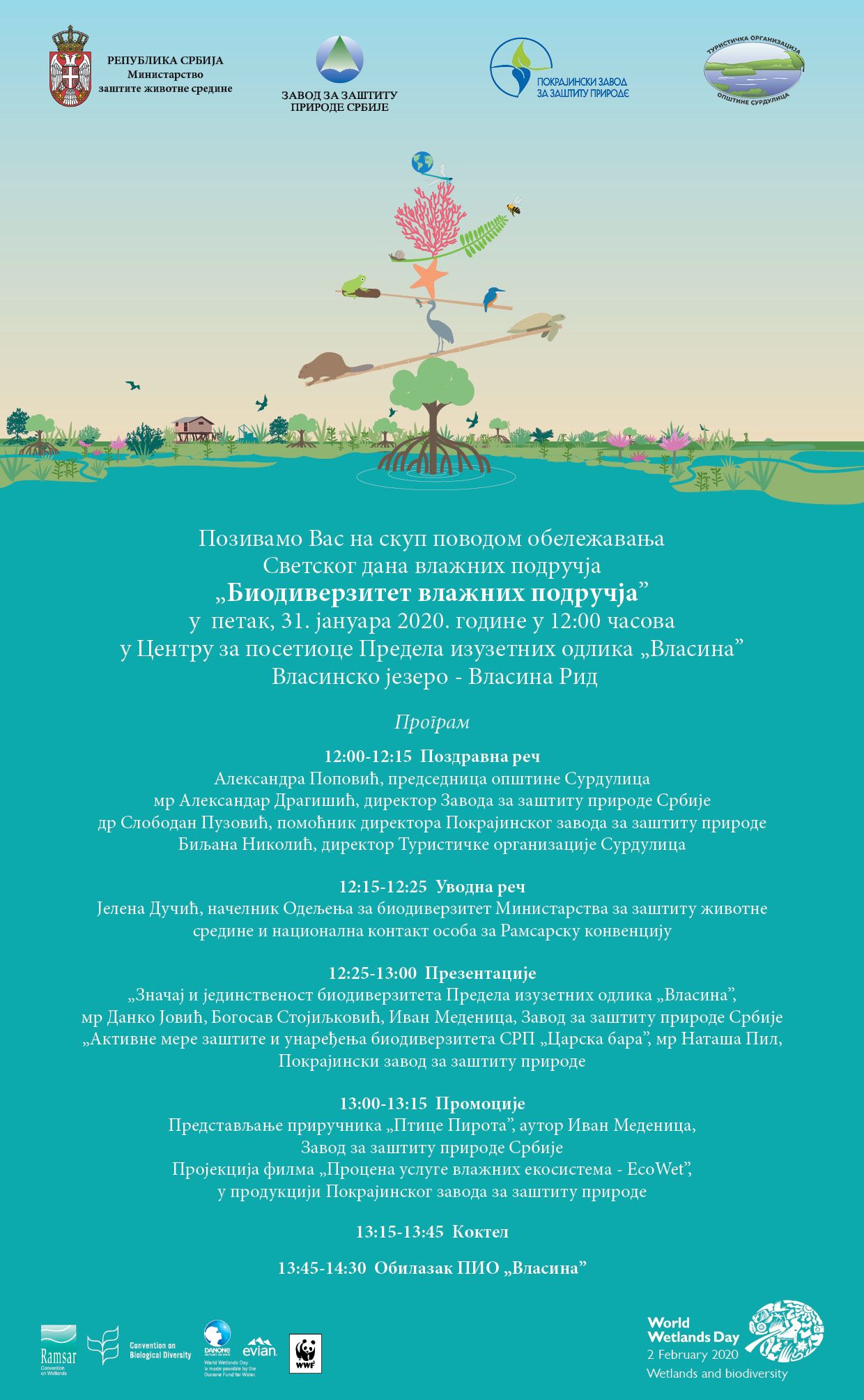 Ministarstvo zaštite životne sredine, Zavod za zaštitu prirode Srbije, Pokrajinski zavoda za zaštitu prirode i Turistička organizacija opštine Surdulica, povodom obeležavanja Svetskog dana vlažnih područja (World Wetlands Day), kao centralni nacionalni događaj, organizuju skup „Vlažna područja i biodiverzitet" 31. januara 2020. godine u zaštićenom području - Predeo izuzetnih odlika „Vlasina".