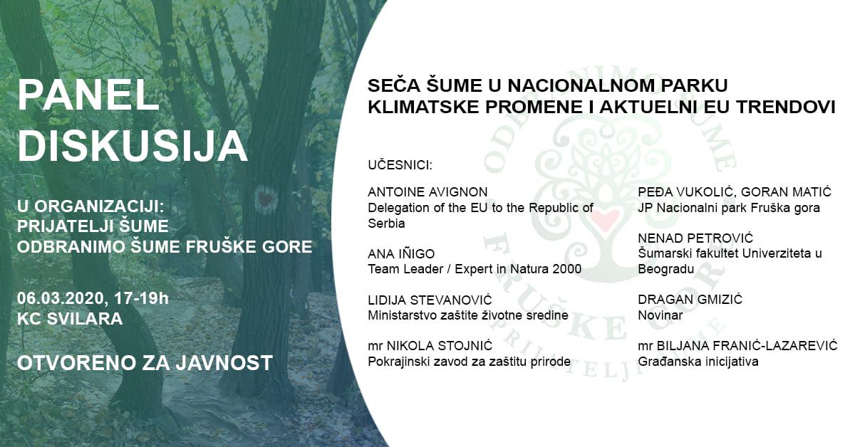Otvorena diskusija o seči šume na Fruškoj gori i mogućim merama protiv klimatskih promena sa predstavnicima republičkih i pokrajinskih institucija, EU delegacije u Srbiji, kao i zainteresovane i stručne javnosti. Dobrodošli ste da pokušamo zajedno da razumemo problem, a to je već pola rešenja.