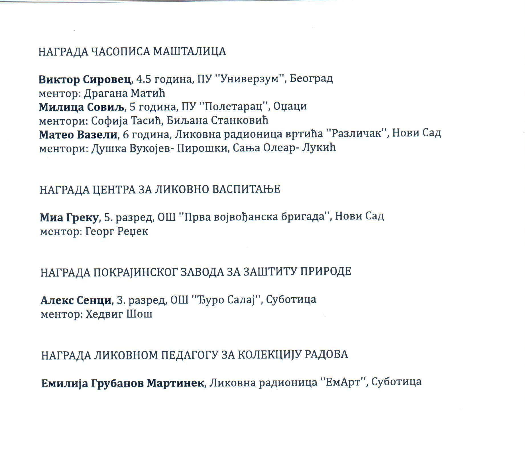 Nakon izlaganja su prisutnoj deci dodeljenje zaslužene nagrade (videti u prilogu spisak nagrada).