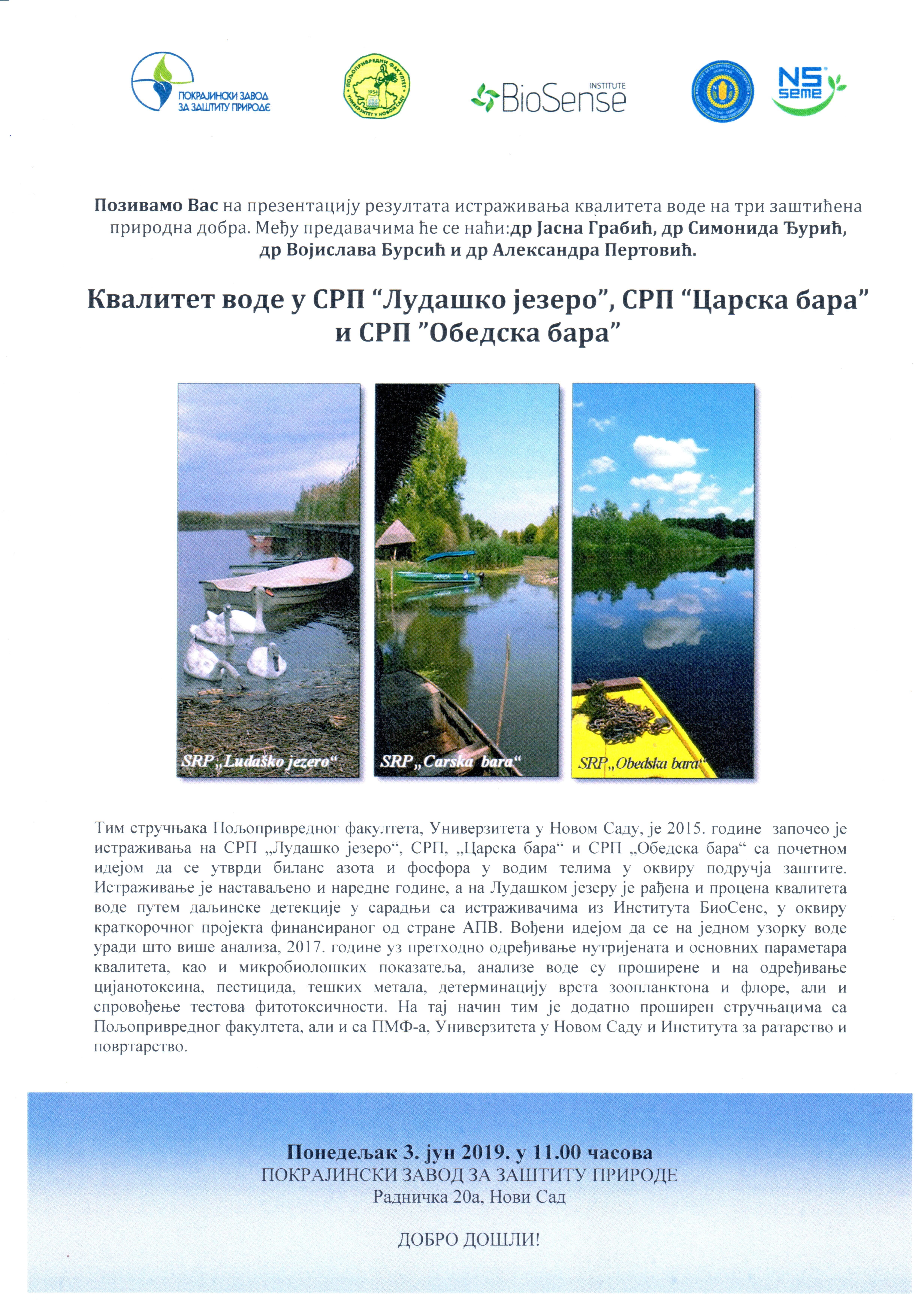 na prezentaciju rezultata istraživanja kvaliteta vode na tri zaštićena prirodna dobra.