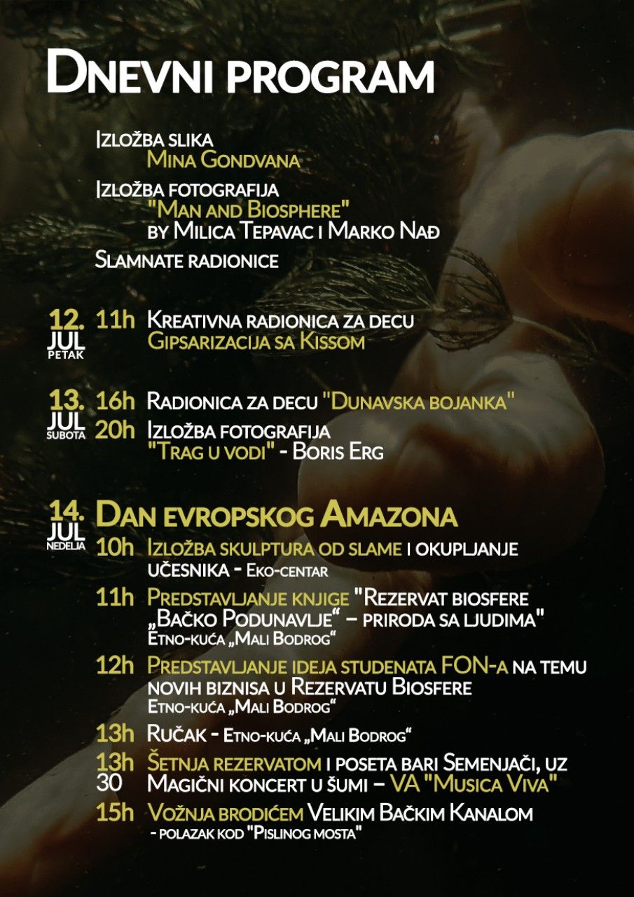 Dve godine od proglašenja "Bačkog Podunavlja" za rezervat biosfere pod patronatom Uneska biće obeleženo ove godine u Bačkom Monoštoru. "Dan evropskog Amazona", kojim se svake godine komemoriše uspomena na dr Martina Šnajdera Jakobija (1956-2012), jednog od prvih utemeljivača ideje o prekograničnoim rezervatu biosfere uzduž Mure, Drave i Dunava, biće proslavljen u okviru drugog dana festivala "Regeneracija Dunava" u nedelju 14. juna 2019. jedinstvenim programom na ovom simboličnom mestu i u njegovoj pitoresknoj okolini. Dan evropskog Amazona organizuju Svetski fond za prirodu WWF, UG "Podunav" i Pokrajinski zavod za zaštitu prirode. Sva dešavanja su otvorena za posetioce.