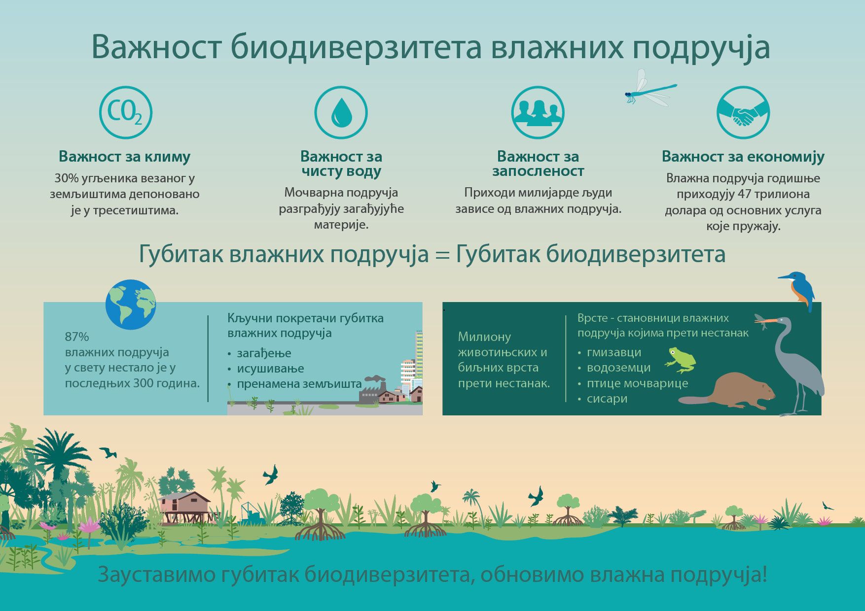 Upozoravajući na činjenicu da je 87% vlažnih područja u svetu nestalo u poslednjih 300 godina i da 40% živog sveta živi u staništima ovih područja, milionima životinjskih i biljnih vrsta preti nestanak, pre svega, gmizavcima, vodozemcima, pticama močvaricama i sisarima. U cilju skretanja pažnje javnosti o ovoj pojavi, tema obeležavanja na svetskom nivou je „Obilje živog sveta vlažnih područja – Biodiverzitet i vlažna područja".
